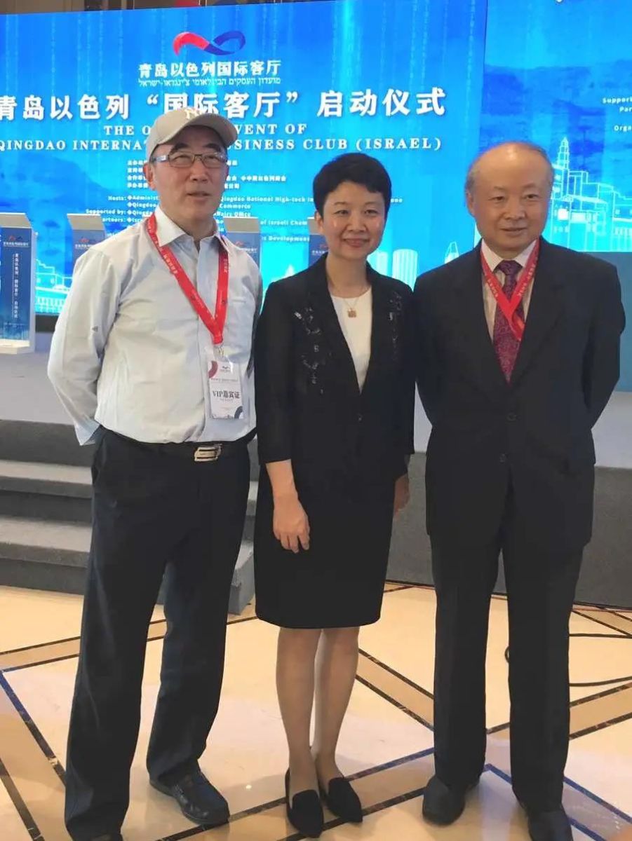 右起:中国驻以色列前大使詹永新,中以(青岛)国际客厅发展有限公司董事长尹纳新,dcbox小金库股份董事长何宁。
